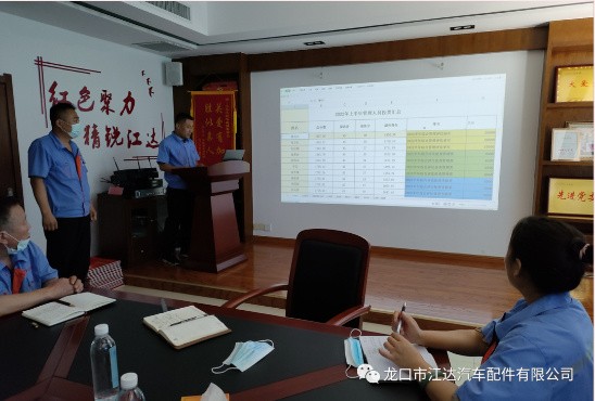 2022年7月15日,江達公司二樓會議室內(nèi)氣氛高漲,70多名優(yōu)秀員工管理者代表匯聚一堂,參加江達公司2022年上半年工作總結(jié)表彰會議。會議首先由董事長公布表彰人員名單,公司高層管理者分別為上半年優(yōu)秀員工管理者代表頒發(fā)榮譽證書和現(xiàn)金獎牌。